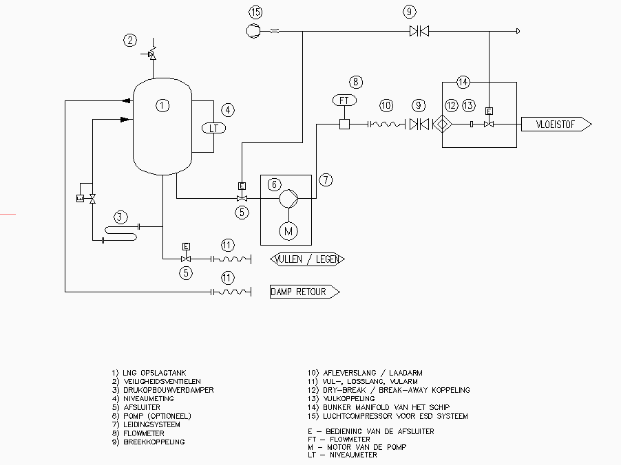 LNG-opslagtank en verwant leidingwerk inert gemeten | ________ °C dauwpunt |